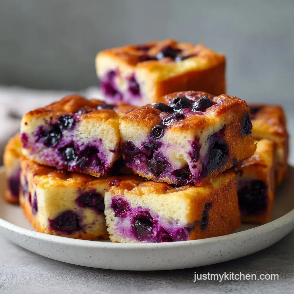 Custard Stability: The ratio of eggs to milk creates a stable network that sets during baking. It transforms the liquid into a velvety binder that holds the blueberries in place.